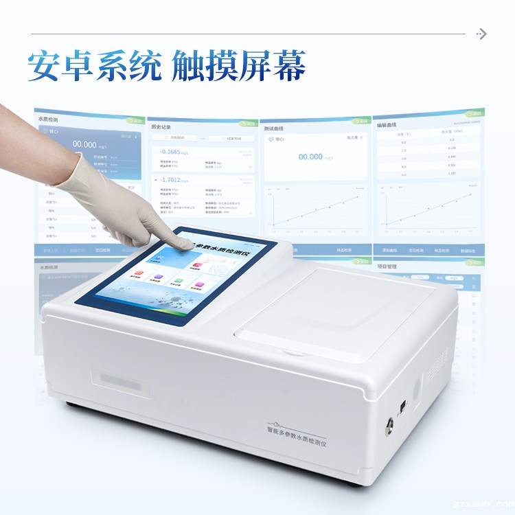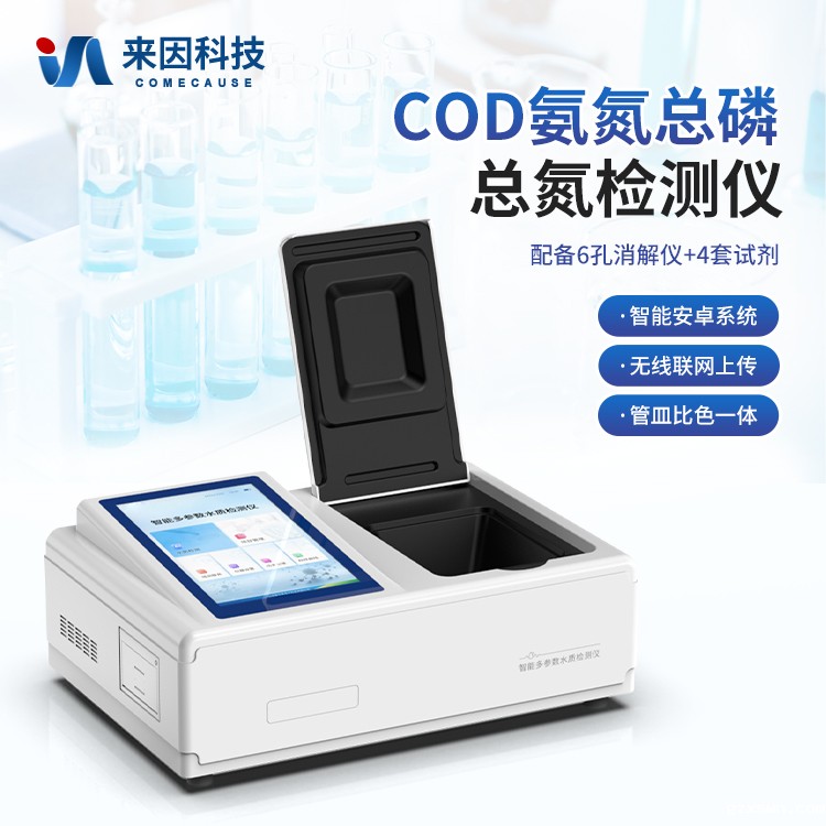 主要检测COD、氨氮、总磷、总氮指标,兼具智能数据分析功能,图表、列表显示数据,分析一目了然;高清晰度彩色液晶触摸显示屏,Android智能操作系统,中文显示界面,中英文键盘,人性化操作,标配智能6孔快速消解仪,使用更简单方便。