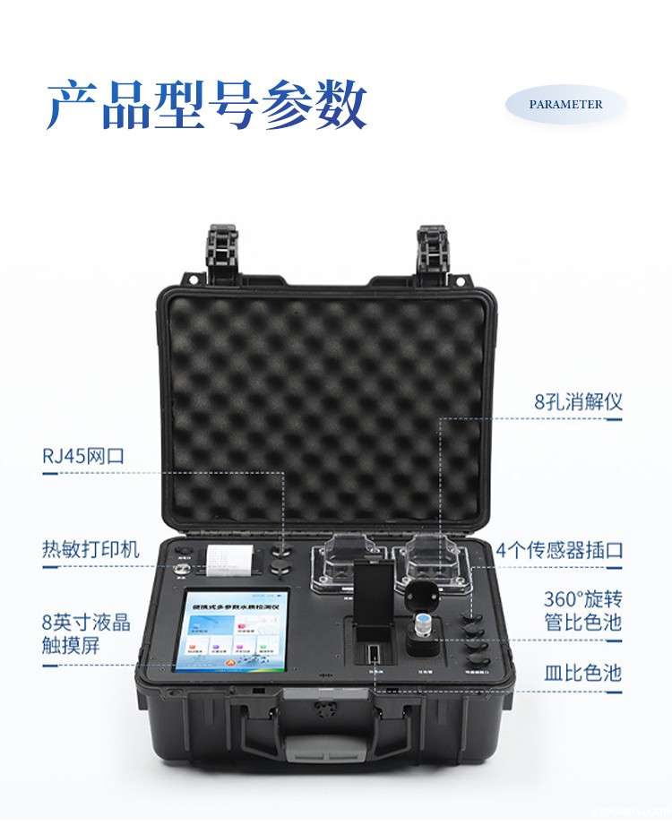IN-BZ型便携式多参数重金属检测仪采用高强度PVC工程塑料手提箱设计,消解检测一体式设计,其中消解模块具备双温区功能,检测部分同时具备360°旋转比色管检测和比色皿检测,安卓智能操作系统,8英寸高清液晶触摸屏,光纤检测技术,进口光源,内置大容量锂电池,便携多参数水质检测仪具有性能稳定、测量准确、测定范围广、功能强大、操作简单等特点。