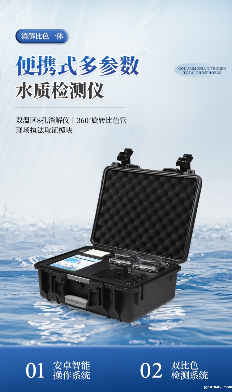 简要描述: 便携式全项目水质检测仪采用安卓智能系统7.1.1版本,更流畅的交互体验,运转速度更快速,稳定性更强;双比色检测系统,同时支持预制试管比色和比色皿比色;比色管检测部分采用360°精密旋转装置,有效保证精度,稳定性10倍提升;内置双温区8孔消解仪,左右温区独立控制,可对COD总磷总氮等进行快速消解。