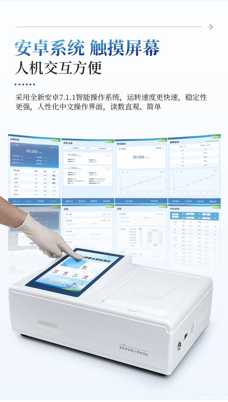2、10.1英寸液晶触摸屏显示,人性化中文操作界面,读数直观、简单。