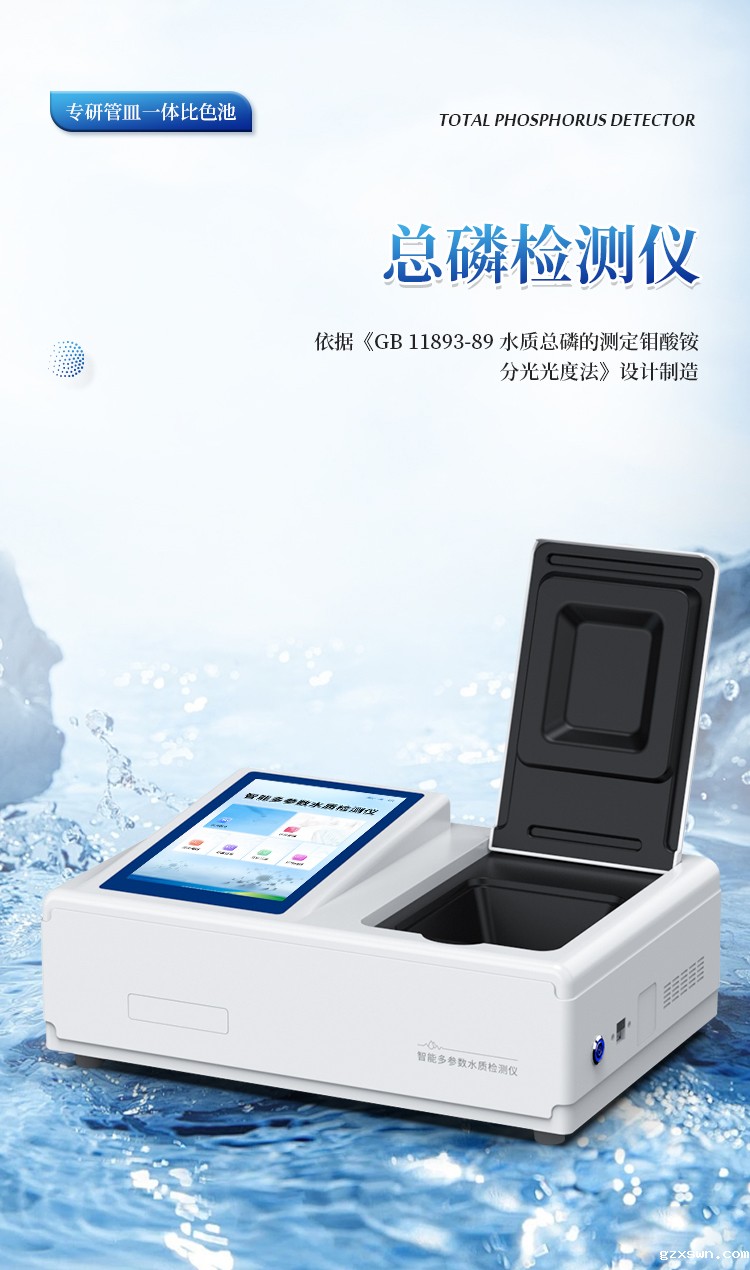 智能总磷测定仪是参考《GB 11893-89 水质总磷的测定 钼酸铵分光光度法》标准设计制造,主要检测水质总磷浓度指标;本仪器兼具智能数据分析功能,图表、列表显示数据,分析一目了然;高清晰度彩色液晶触摸显示屏,Android智能操作系统,中文显示界面,中英文键盘,人性化操作,使用更简单。