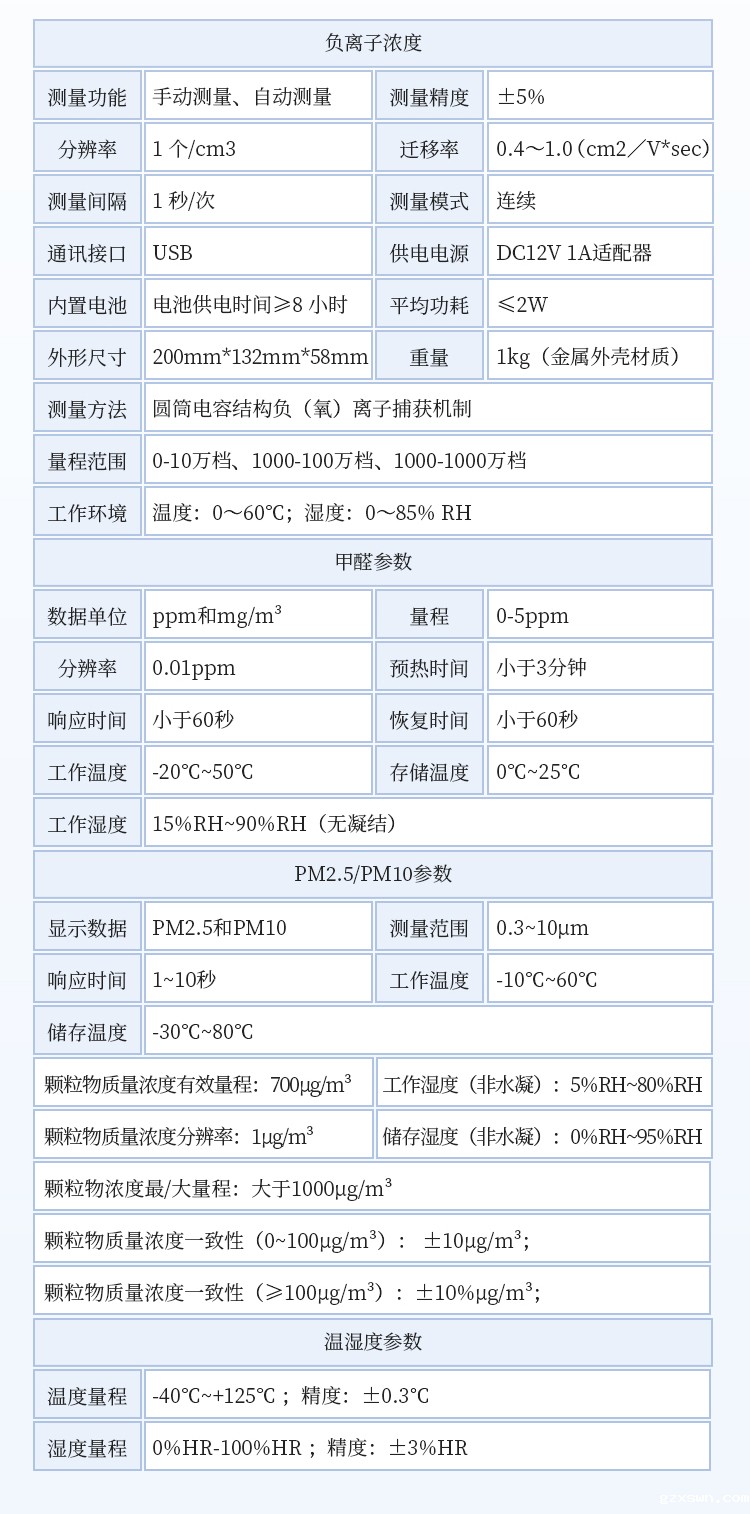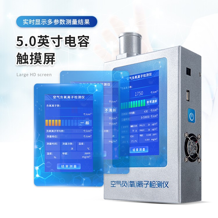 实时测量空气中的大气负氧离子浓度、甲醛浓度、pm2.5、pm10、温湿度,是环境检测、纳米涂料、负离子保健产品、负离子家装建材、室内检测、空气治理、空气净化器及其制品负离子浓度的测量与演示的优选工具。