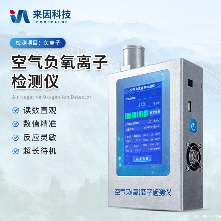 实时测量空气中的大气负氧离子浓度是环境监测、纳米涂料、负离子保健产品、负离子家装建材、室内检测、空气治理、空气净化器及其制品负离子浓度的测量与演示的优选工具。