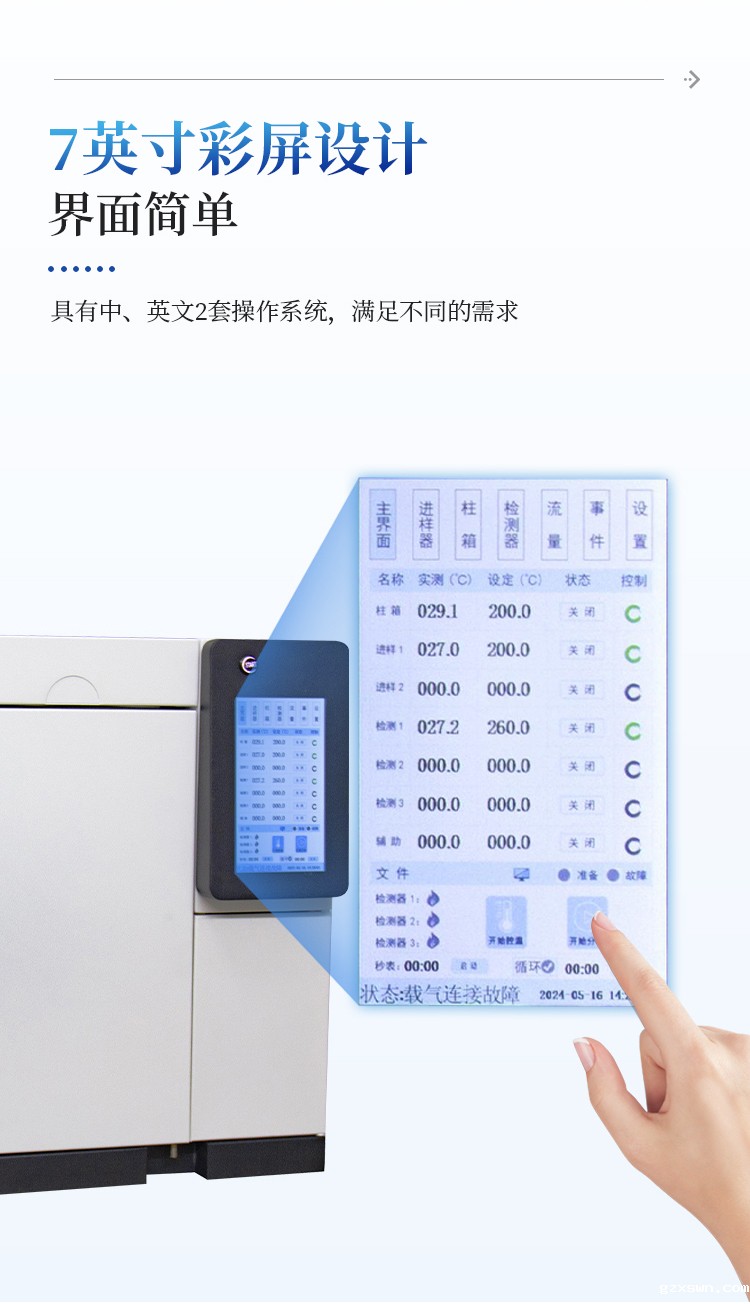 载气具有压力保护功能,气体压力低 0.4mpa 时仪器自动切断电源有效保护色谱柱使用安全。