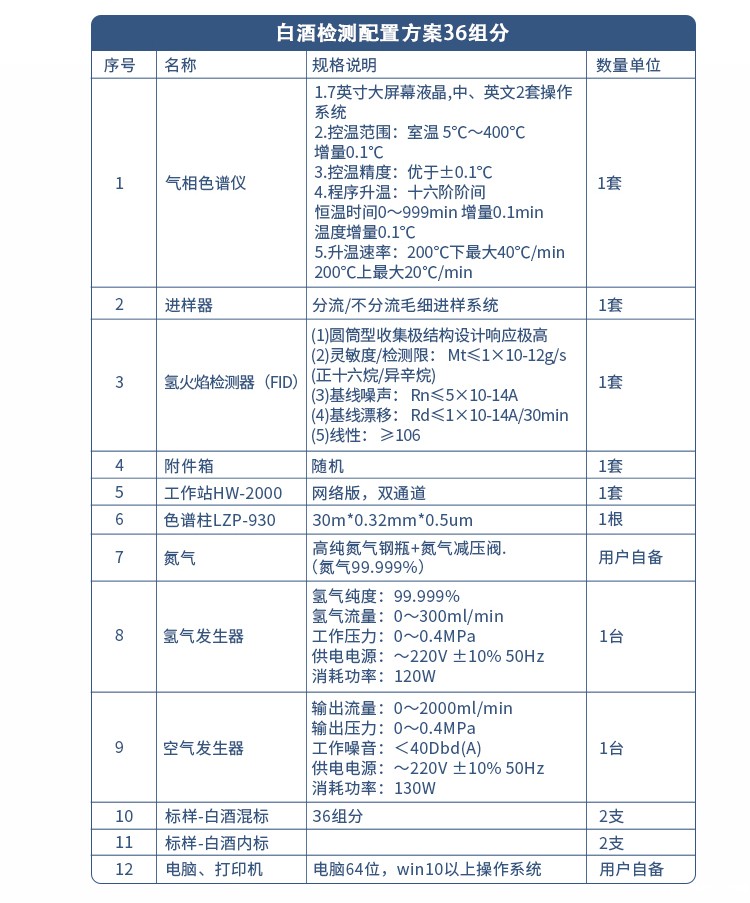 9 | 白酒混标 | 30种组分 | 来因科技 | 2支 | 赠送 |