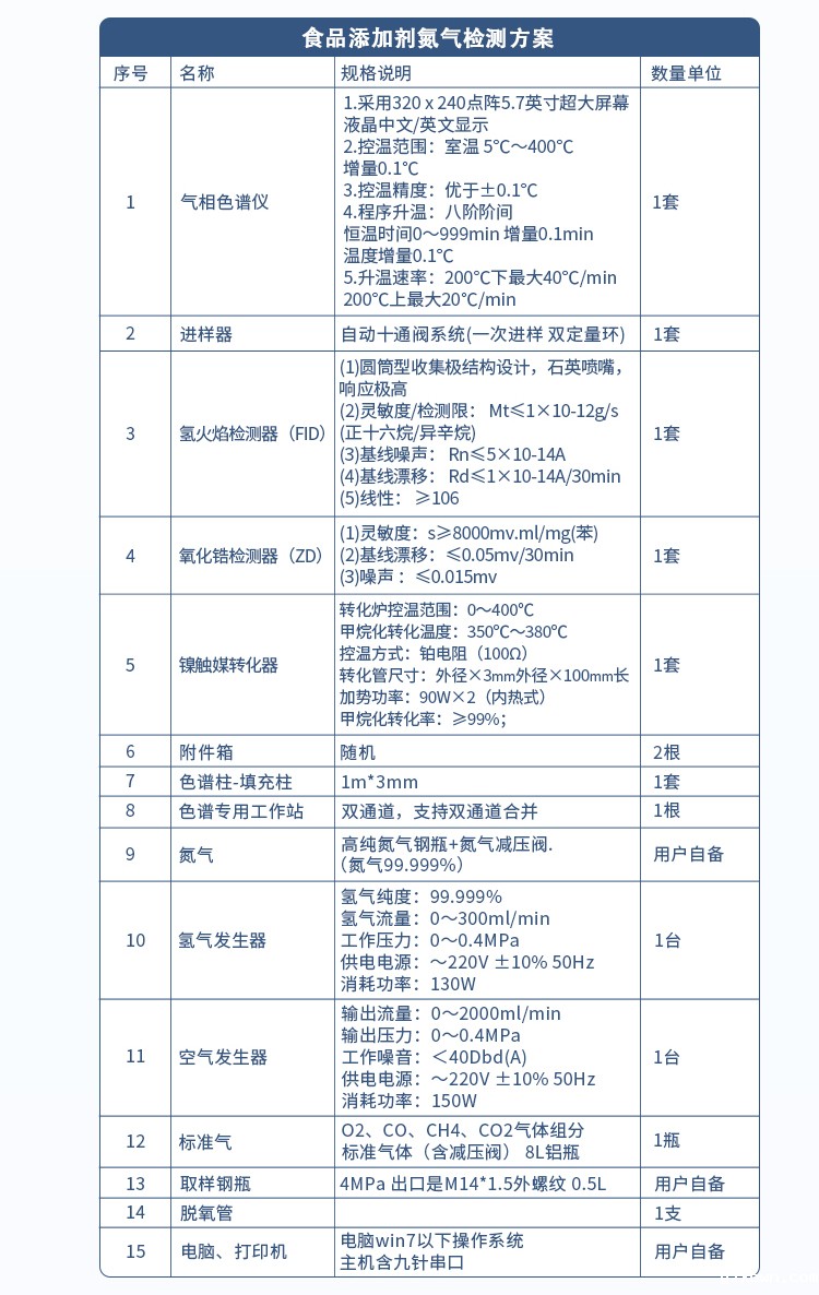3 | 进样系统 | 分流/不分流毛细进样系统 | 来因科技 | 1套 | 标配 |
