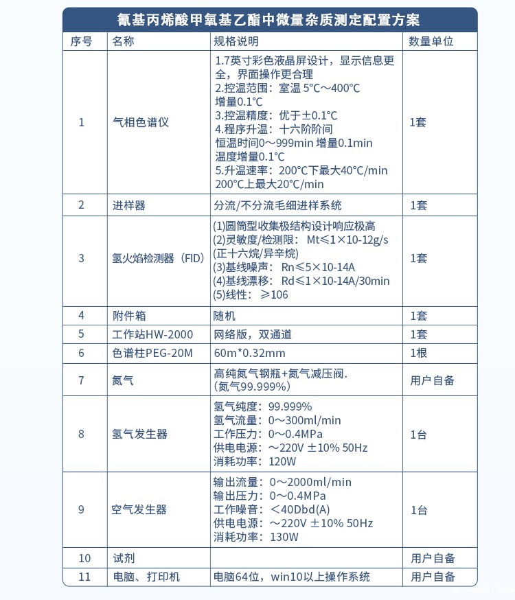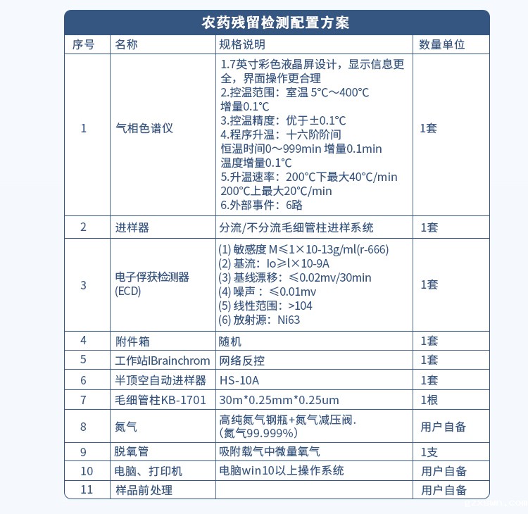 简要描述: 气相色谱仪配置序号名称规格 说明数量单位1气相色谱仪 (GC-8100)1.5.7英寸大屏幕液晶中文显示、开机自检、宽程自诊断、智能模糊控制后开门系统、超温断电保护、七阶程升。