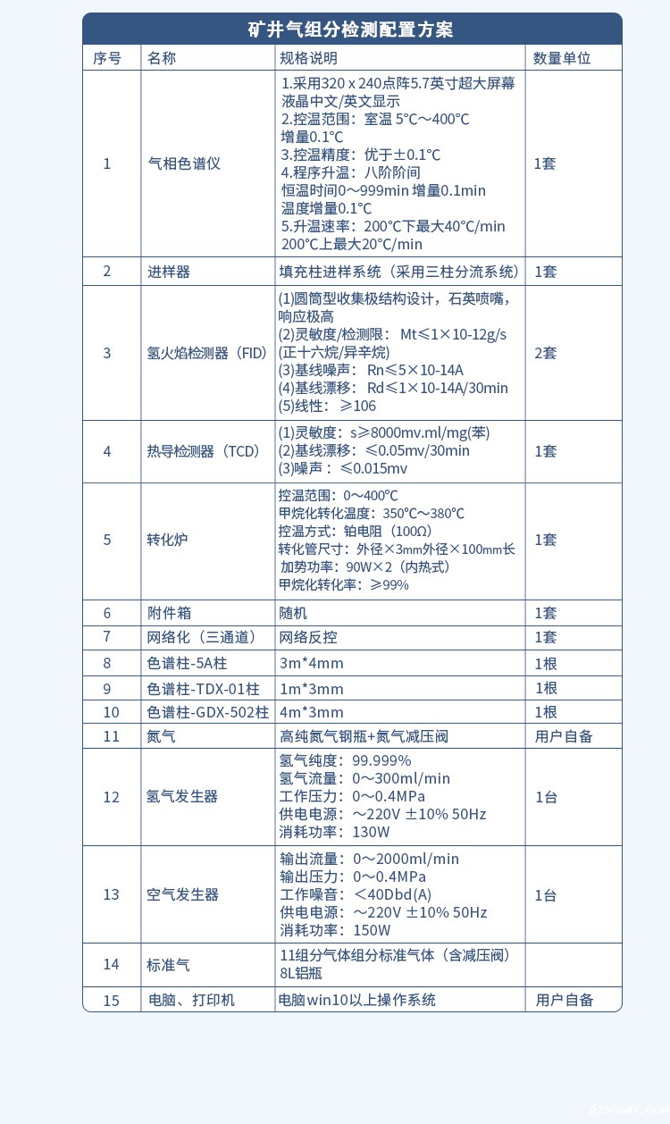 检测器:3 个(2 个FID检测器,1个TCD 检测器)