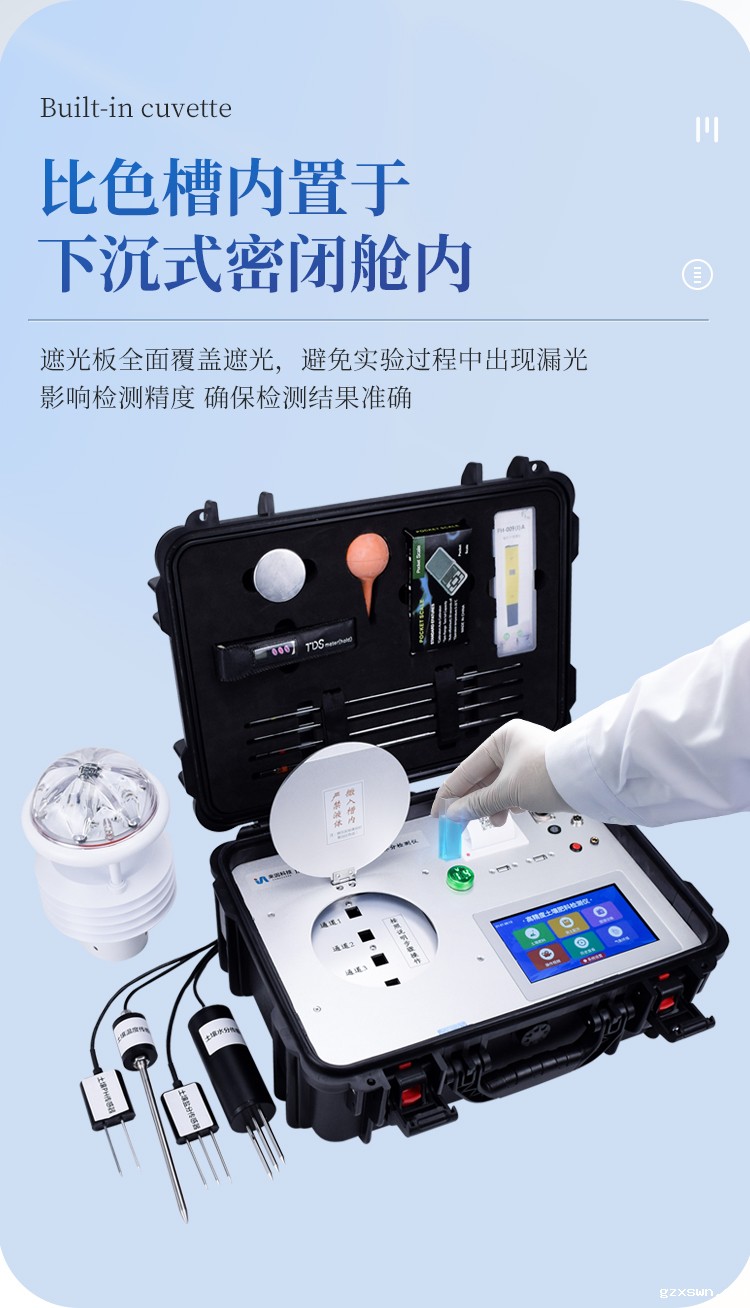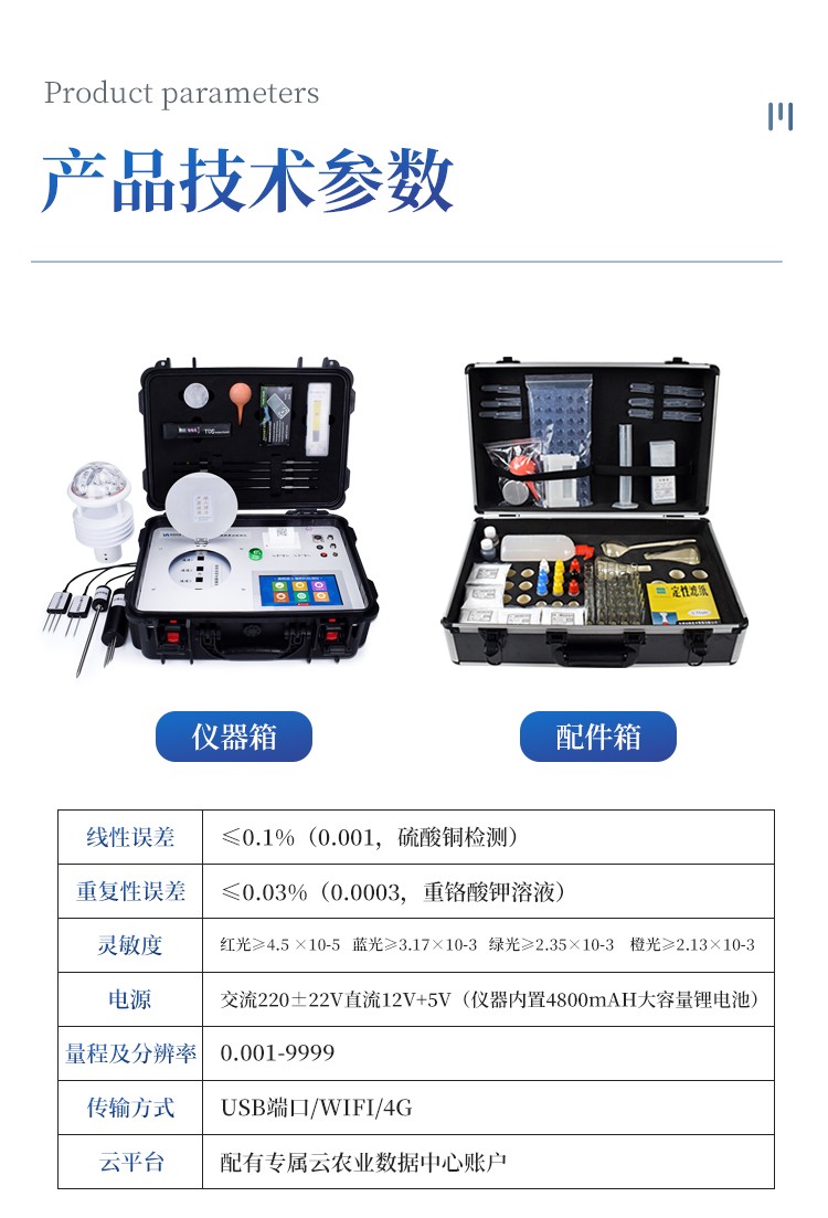 检测速度:在正常熟练程度下,测土壤铵态氮、磷、钾三项要20分钟(含土样前处理及药剂准备),测肥料氮、磷、钾三项需50分钟左右,微量元素单项检测需20分钟左右,土壤水分、温度、ph、盐分可即时显示。