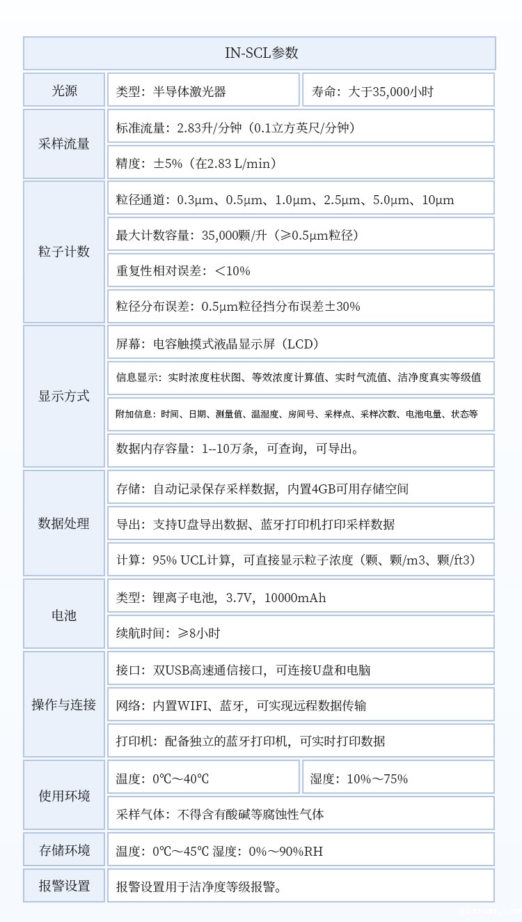 最大计数容量:35,000颗/升(≥0.5μm粒径)