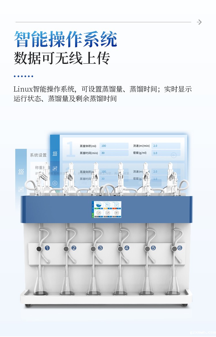 1、批次处理量为1——6个,每个通道均独立控制,并且每个通道都配备了防倒吸、防过量蒸馏及防干烧的功能保护设计;