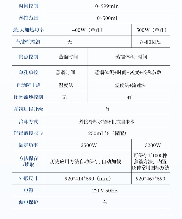 蒸馏精度 | / | ±0.1mL | ±0.1mL |
