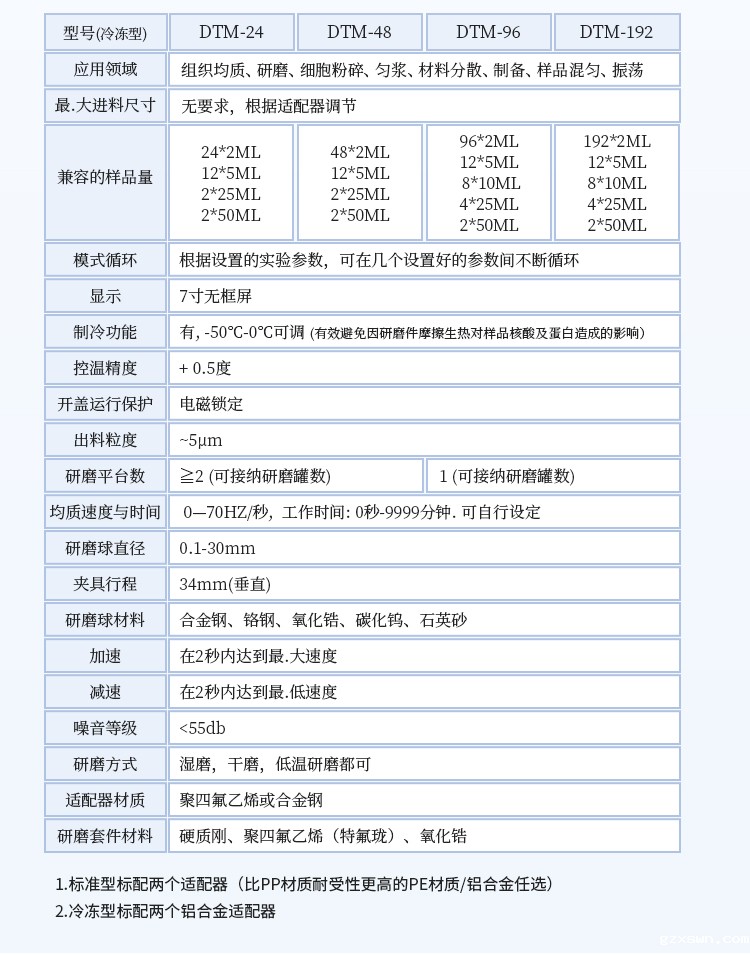 3.可以兼容的样品量: 24*2ML/12*5ML/2*25ML /2*50ML可任选两种适配器,可以任意定做各种规格研磨管