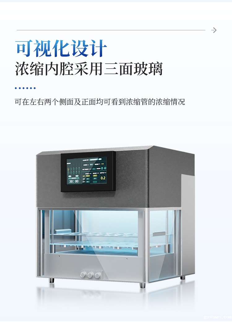 10.▲浓缩内腔采用三面玻璃可视化设计,可在左右两个侧面及正面均可看到浓缩管的浓缩情况;