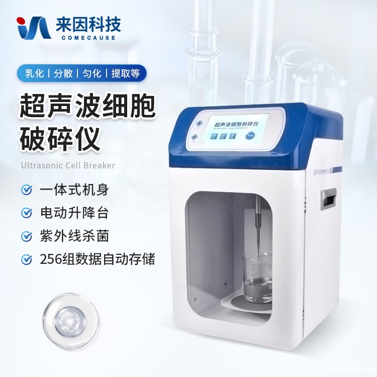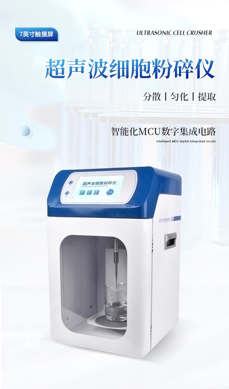 超声波细胞粉碎仪(一体式)将隔音箱融入到主机中形成一体化。功能齐全、外观新颖、性能可靠。仪器采用大屏液晶显示;中央微机集中控制,超声输出、间隙时间、超声功率、温度可任意设定,样品温度监测显示,频率自动跟踪,故障自动报警等功能。