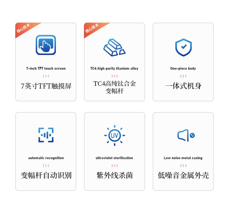 9. 超声探头采用TC4军工级钛合金材质,强度高、耐蚀性好、耐热性高;