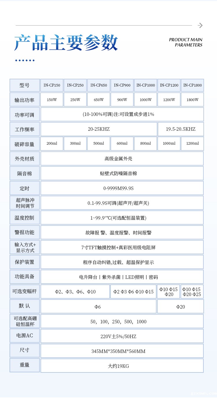 破碎容量 | 0.5--200ml(需选配相应的变幅杆) |