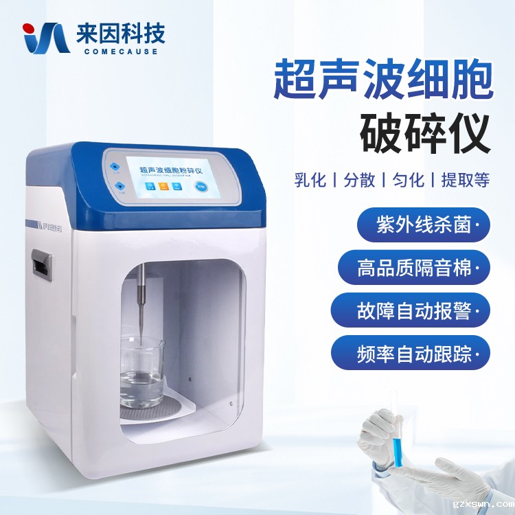 超声波细胞粉碎仪(一体式)将隔音箱融入到主机中形成一体化。功能齐全、外观新颖、性能可靠。仪器采用大屏液晶显示;中央微机集中控制,超声输出、间隙时间、超声功率、温度可任意设定,样品温度监测显示,频率自动跟踪,故障自动报警等功能。