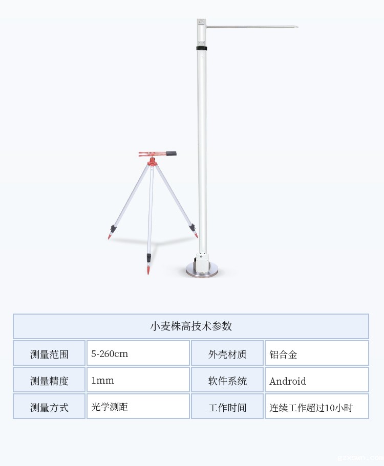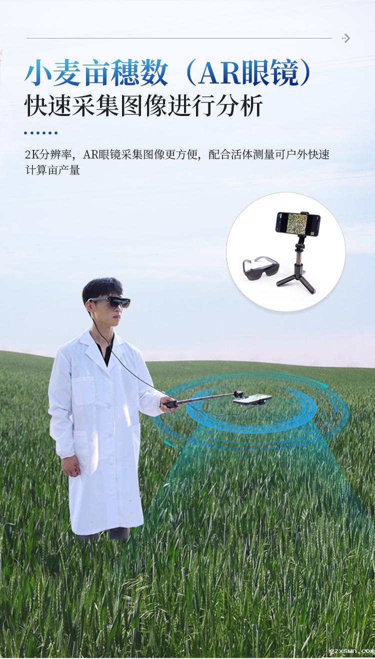 简要描述: 小麦亩穗数测量仪集成图像识别与深度学习技术,为作物研究提供多维度数据支持。可同时适用各种高、矮作物的测量,无需更换设备,一机多用,手机可以固定或者手持操作,测量过程中可在距离测量杆最远10米范围内自由移动,方便捕捉整个植株的图像。