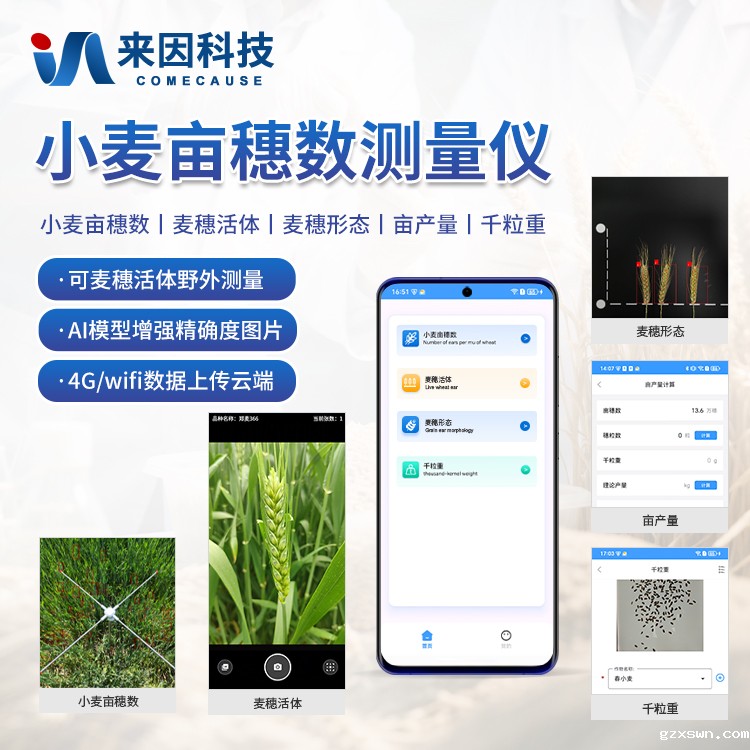 本设备适用于田间调查、育种选育、产量预估等多种应用场景,为小麦的品种筛选、小麦产量预测、产量基因定位和功能解析发挥着至关重要的作用。可显著减少人工计数带来的误差与劳动强度。用户只需在田间选定样方区域,拍摄图像后即可自动获得亩穗数估算结果,是农业数字化与智能化发展的有力工具。