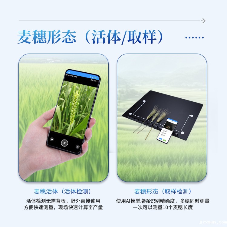★2.有麦穗活体检测及取样检测两种方式,活体检测无需背板,野外直接使用,方便快速测量,现场快速计算亩产量