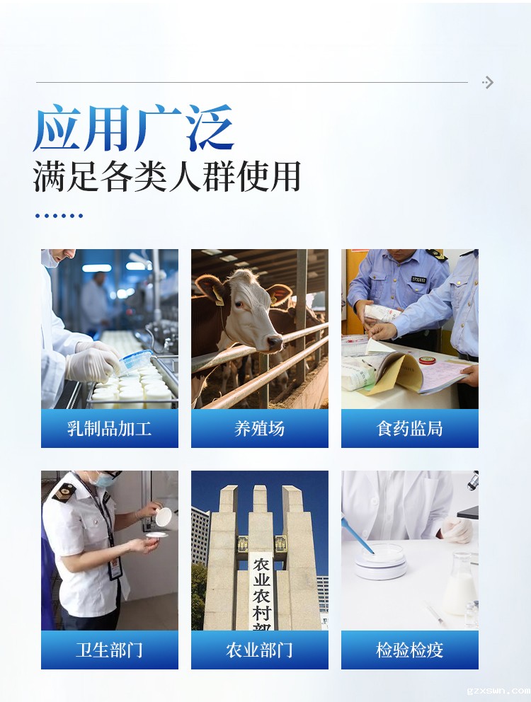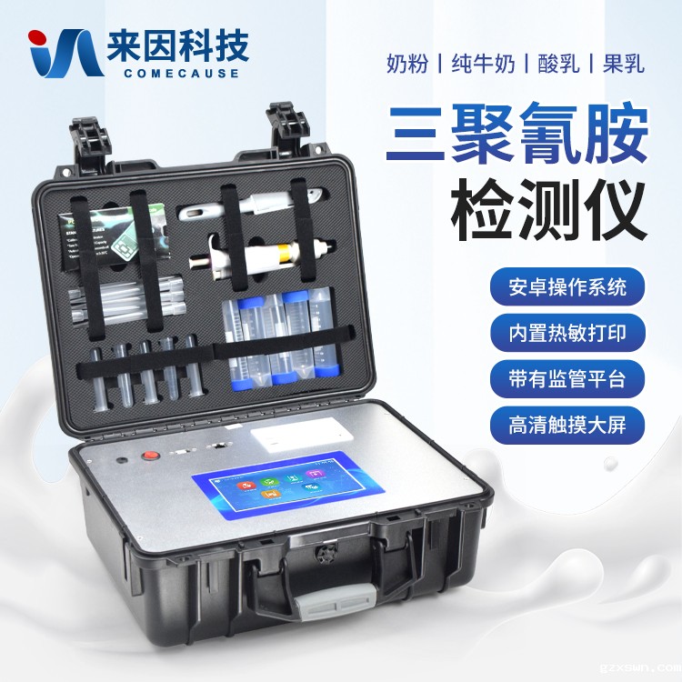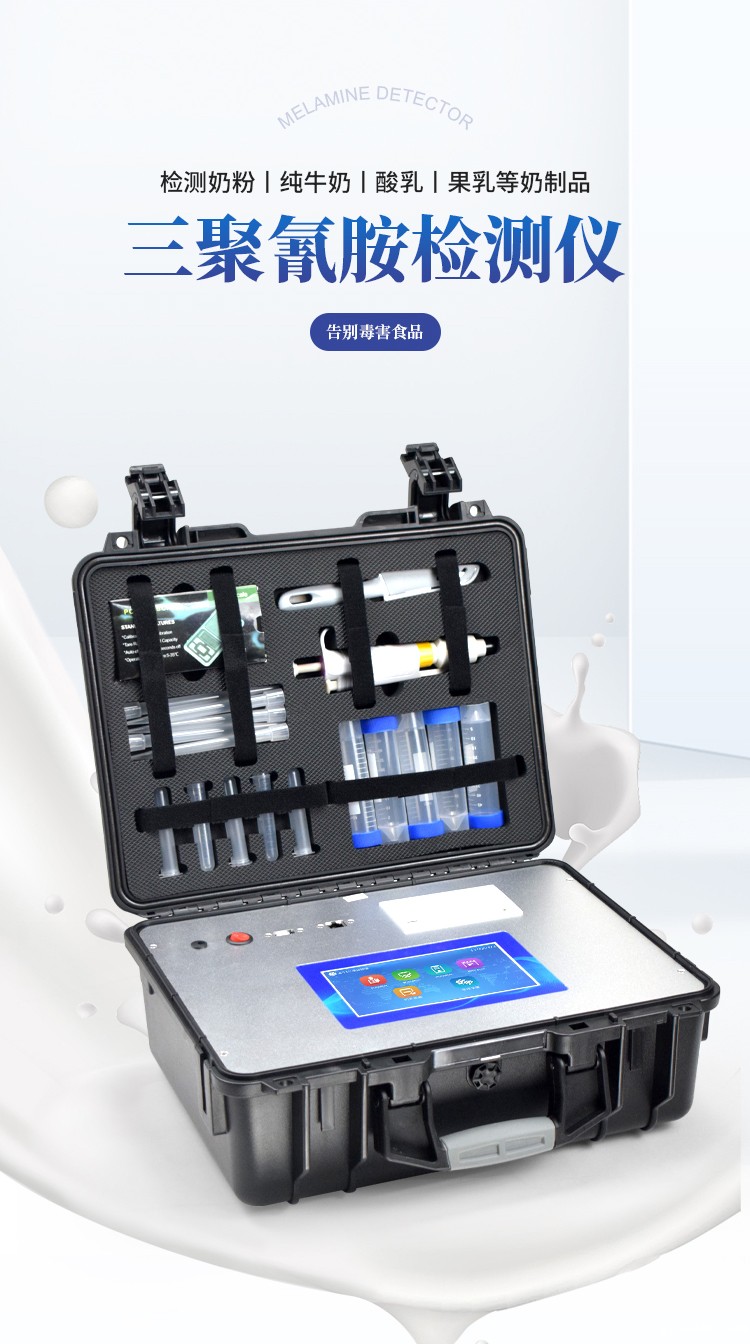三聚氰胺检测仪可快速定量分析检测奶粉、纯牛奶、酸乳、果乳等奶制品、其它食品以及饲料中的三聚氰胺含量。从原料采购到成品检验均可使用,三聚氰胺检测仪广泛应用于乳制品加工、养殖场、食药监局、卫生部门、农业部门、检验检疫等部门使用。