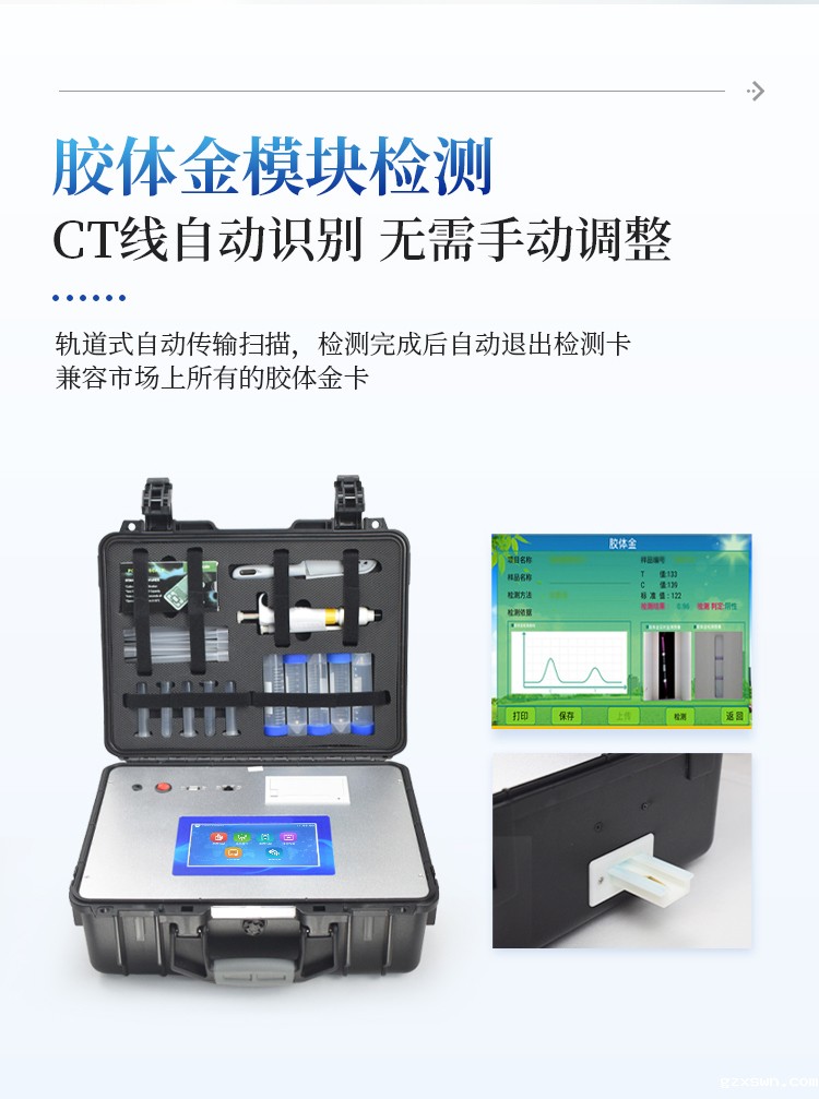 6、胶体金模块检测方式:轨道式自动传输扫描,检测完成后自动退出检测卡。