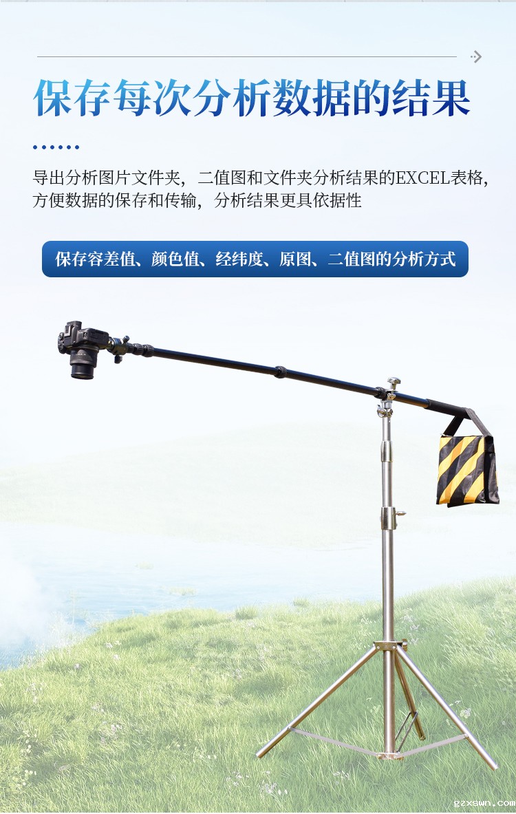 5.可保存每次分析数据的结果、容差值、颜色值、经纬度、原图、二值图、分析的方式,可导出分析图片文件夹,二值图和文件夹分析结果的excel表格,方便数据的保存和传输,分析结果更具依据性。