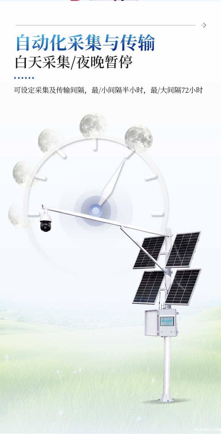 5. 自动化采集与传输:根据GPS定位的经纬度信息,实现白天自动采集,夜晚自动暂停;用户可设定采集及传输间隔,最小间隔半小时,最大间隔72小时