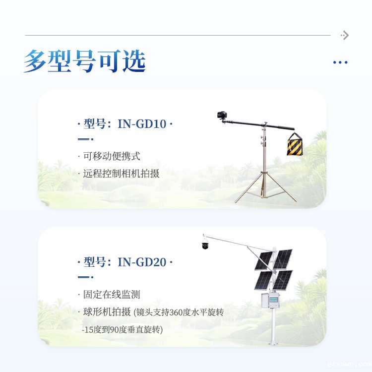 简要描述: 植被覆盖度测量仪IN-GD20根据图像识别原理来实现自动分析,用于植被覆盖度和郁闭度的精确测量。仪器具有良好的防水性能,并带有太阳能供电系统,可在户外环境下长期自动定时采集分析,获取植被长期生长变化情况。软件提供丰富的图像分割模式,软件内置植被、土壤特征模型,支持广泛地域植被盖度和郁闭度测量计算。