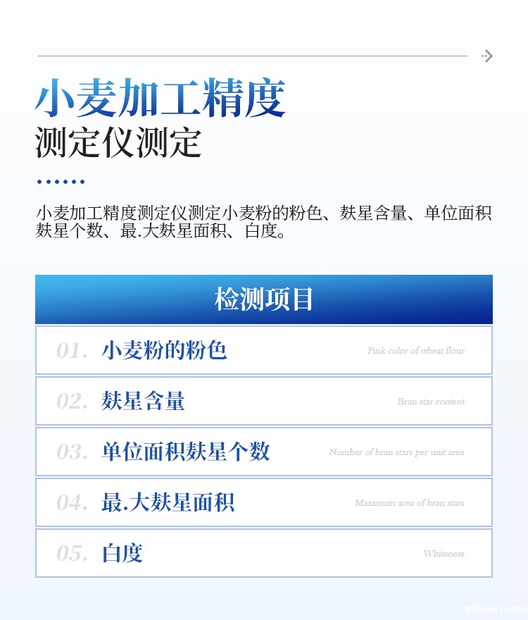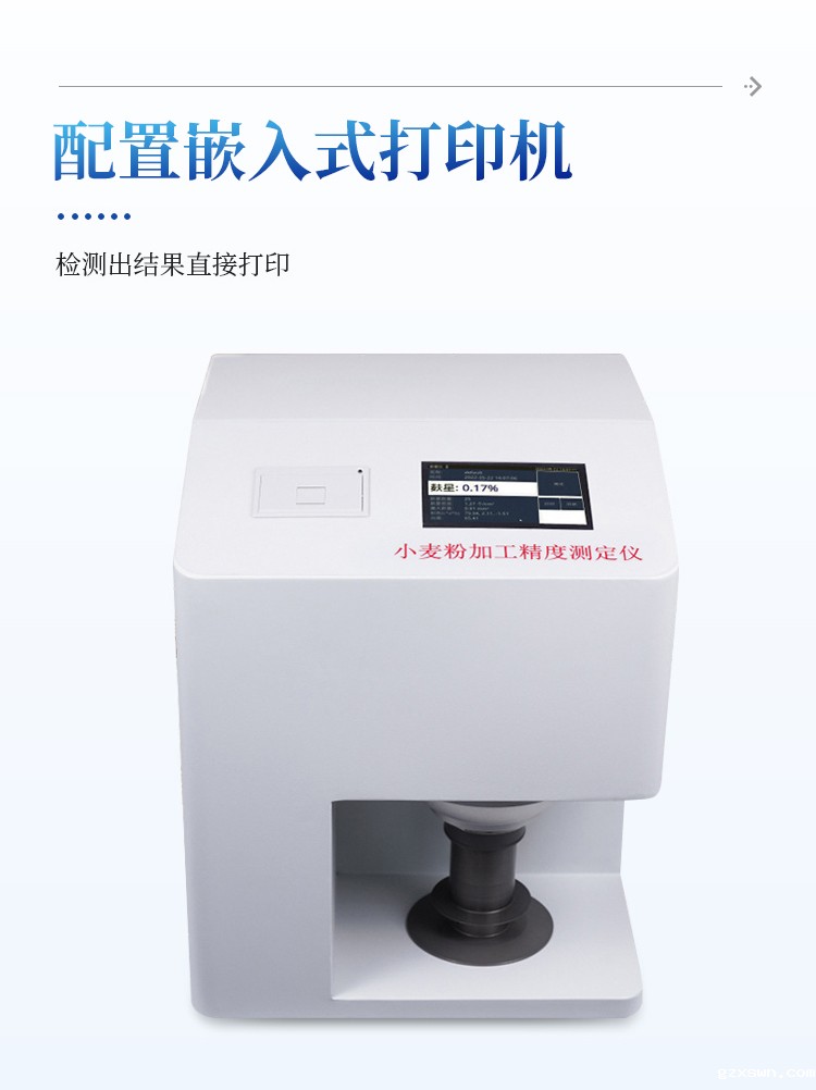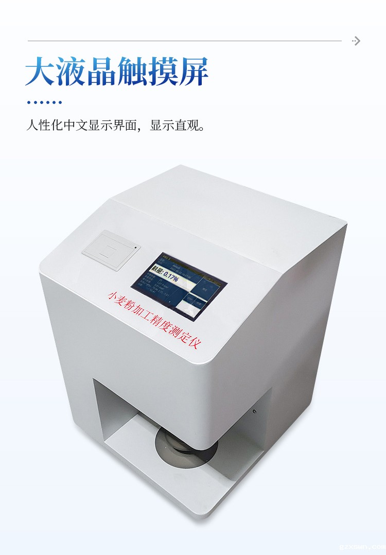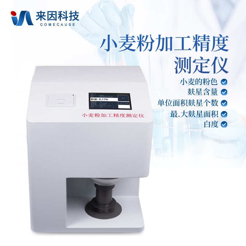 小麦加工精度测定仪测定小麦粉的粉色、麸星含量、单位面积麸星个数、zui大麸星面积、白度。同一份试样两次测定的麸星差值小于算术平均值的 10%、色度值重复性:△E*ab≤0.5