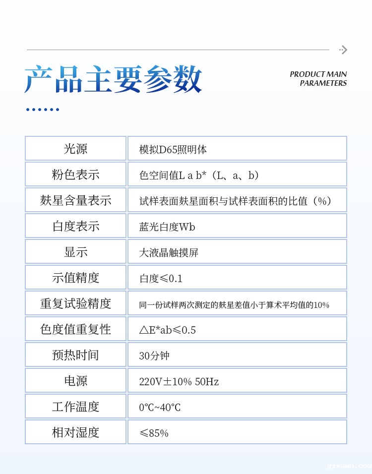 6、示值精度:白度≤0.1