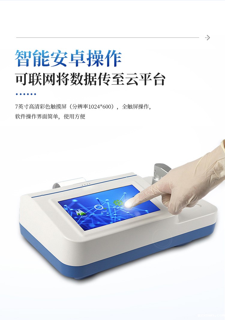 1、安卓智能操作系统,仪器可通过WiFi联网,将数据上传至云平台;