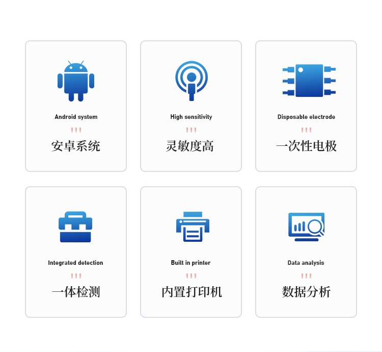 13、仪器使用丝网印刷电极,无需打磨维护等专业复杂前处理过程;