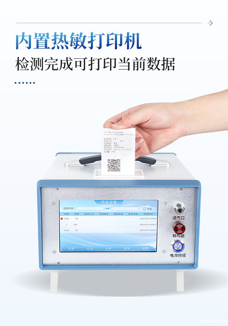 简要描述: 红外CO分析仪IN-Q1采用安卓系统,7英寸触摸显示屏,实时人机交互性更好;存储空间大,可存储>100000条数据;自带热敏打印机,检测完成可打印当前数据;自带wifi,检测完成,可上传到平台,方便数据监管(可选配4G模块);带有USB数据接口,可以将数据导入U盘;数字型流量传感器,实时数据流量显示;采用高精度红外传感器,测量精度高,响应速度快,预热时间短。