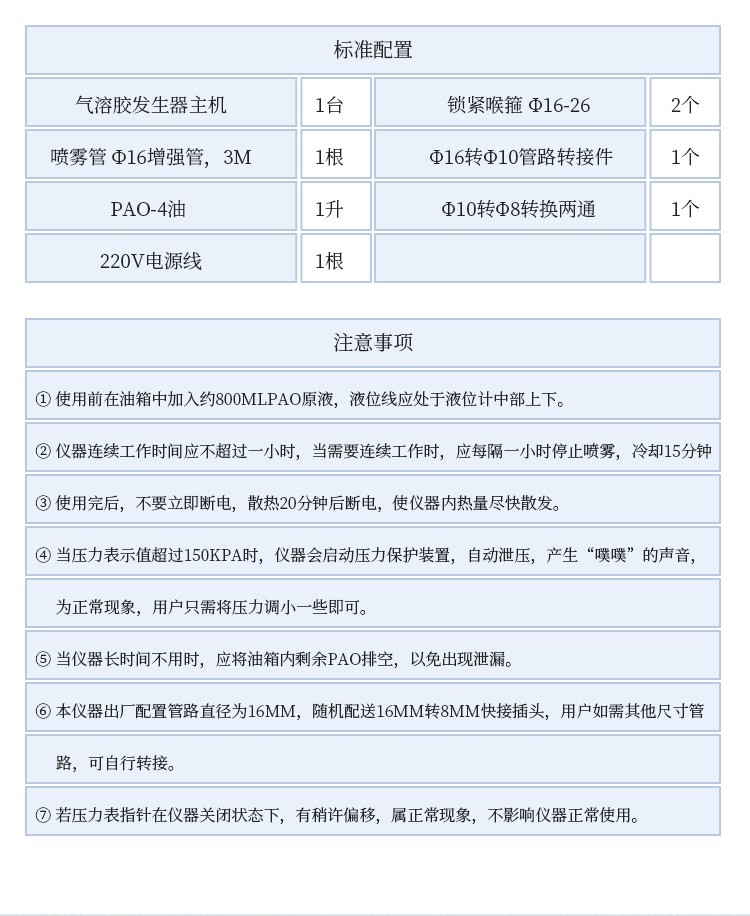 为防止损害您的气溶胶发生器,在使用本设备前请仔细阅读下面的安全须知,并妥善保管本说明书以便所有产品使用者可随时参阅。