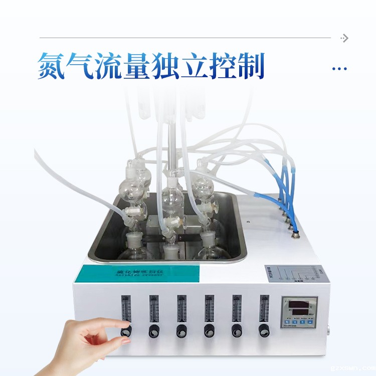 水质硫化物酸化吹气仪根据水质硫化物的测定-亚甲基蓝分光光度法(碘量法)标准开发生产的。满足水质硫化物测定的样品前处理需要。