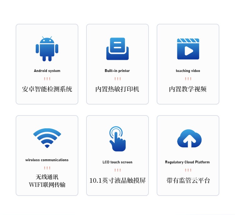 6、具有无线通讯功能,支持WIFI、RJ45、手机热点联网传输,检测数据亦可通过U盘导出;