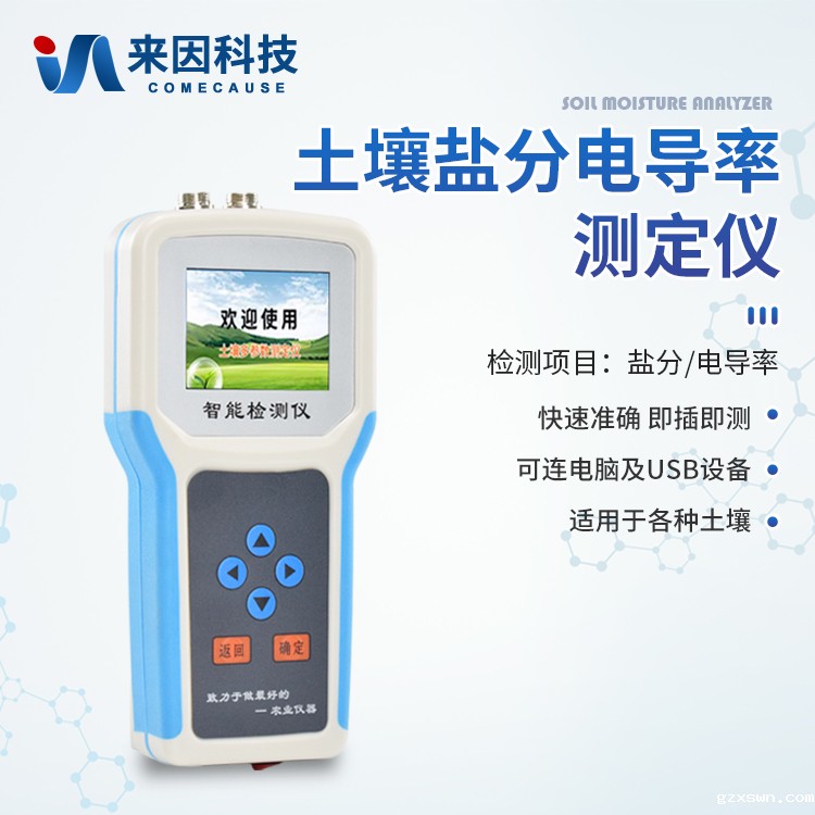 2、同时显示土壤电导率和盐分数值,免去用户手动计算,读数直观。