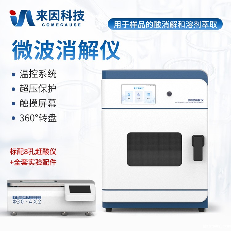 微波消解仪是一种用于样品前处理的设备,通过微波加热技术对样品进行快速、有效的消解。该仪器广泛应用于食品、环境保护、疾病控制、质量监督、商品检验、科研院所等领域,特别适用于各种样品的酸消解和溶剂萃取。