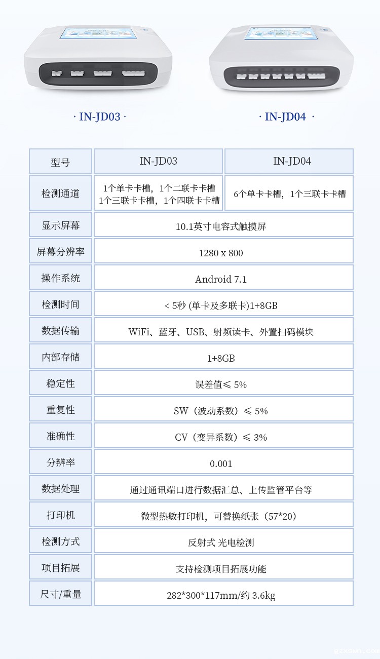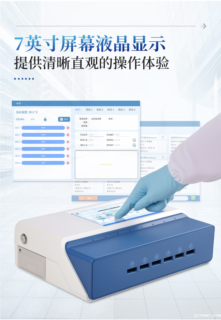 11、检测时间:< 5秒 (单卡及多联卡);可对样本进行胶体金定性/半定量检测。