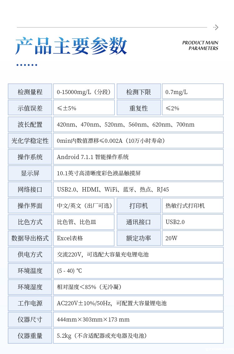 光化学稳定性:20min内数值漂移≤0.002A(10万小时寿命);