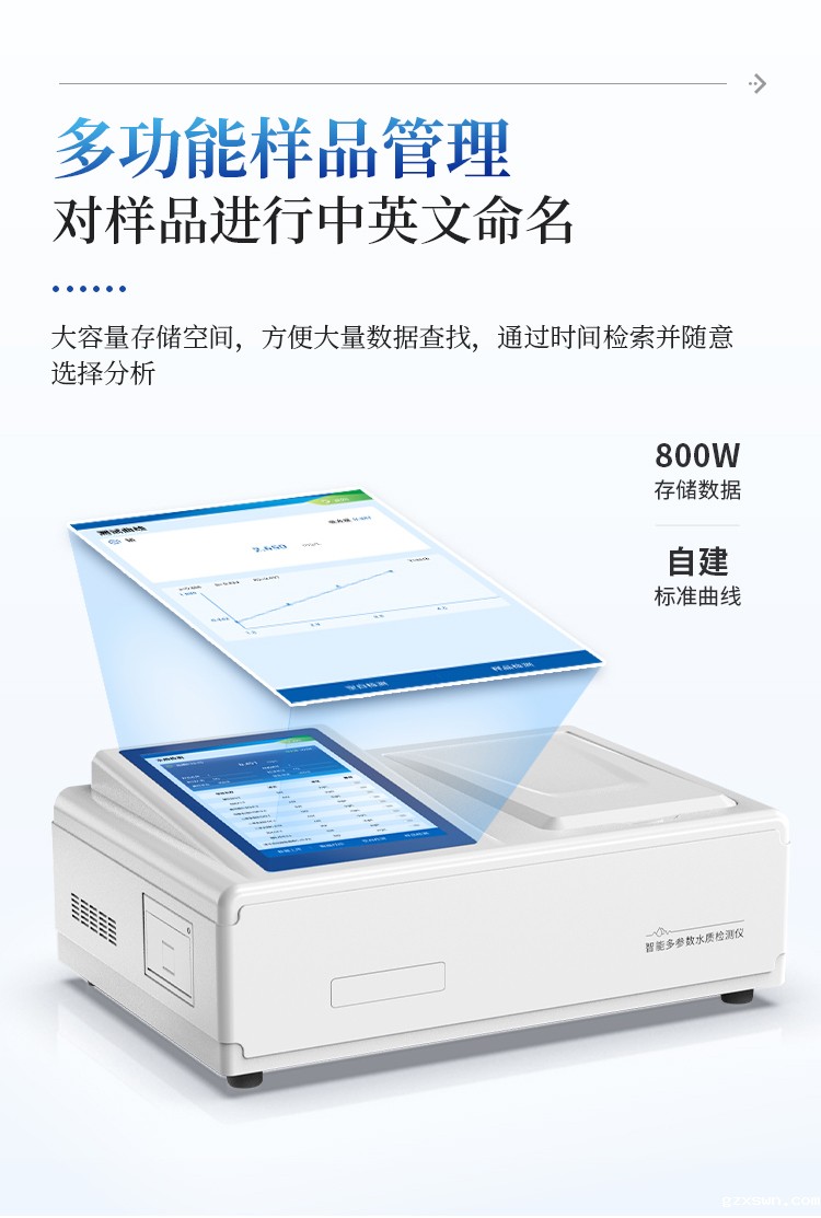 简要描述: 智能氨氮快速检测仪具有无线通讯功能,支持WIFI、RJ45、手机热点联网传输,检测数据亦可通过U盘导出; 多功能样品管理,可对样品进行中英文命名,方便样品记录和数据存储。