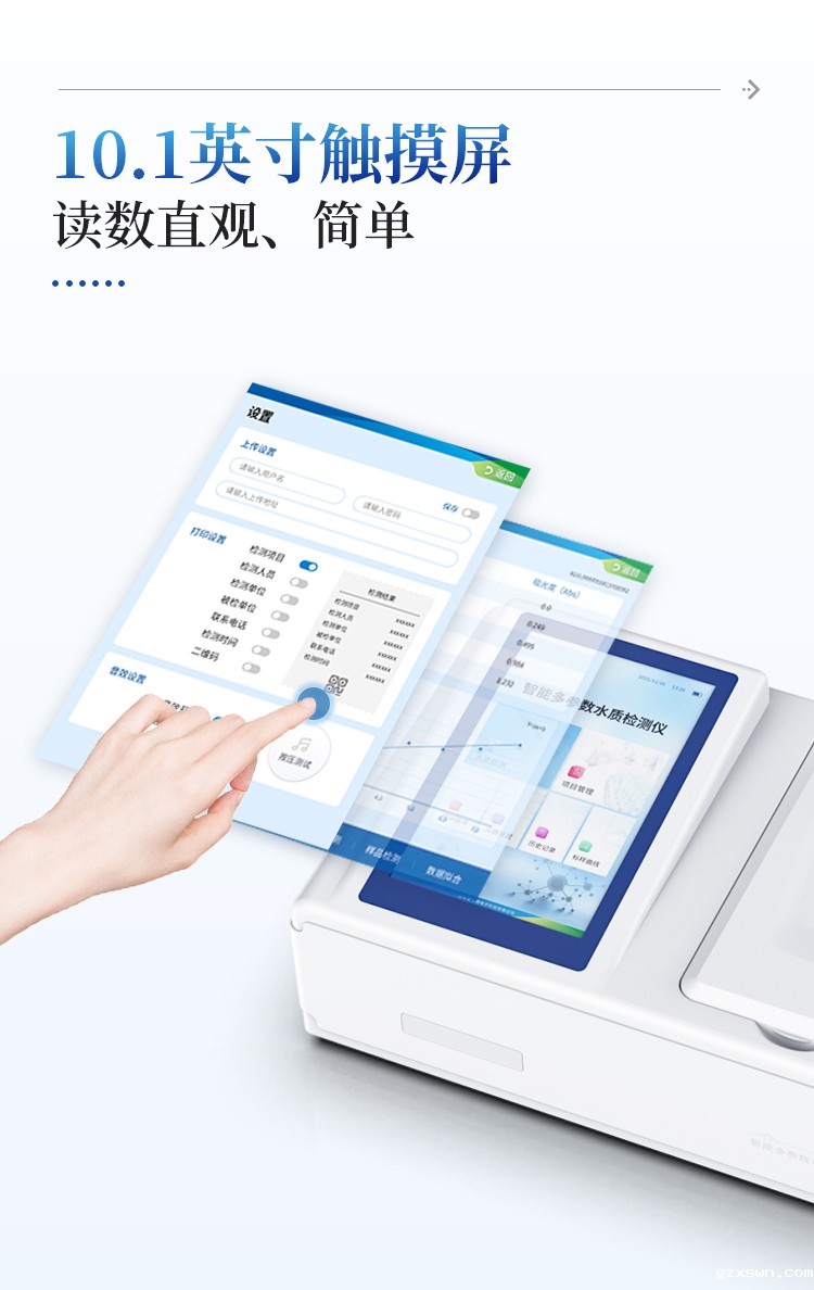 本仪器主要检测水质亚硝酸盐氮浓度指标,兼具智能数据分析功能,图表、列表显示数据,分析一目了然;高清晰度彩色液晶触摸显示屏,Android智能操作系统,中文显示界面,中英文键盘,人性化操作,使用更简单。
