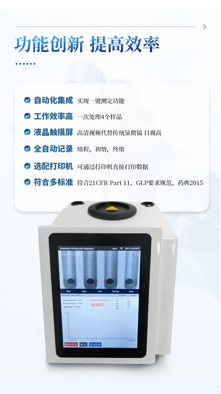熔点仪在化学工业、医药研究中据有重要地位,是生产食品、药物、香料、染料及其他有机晶体物质的必备仪器。