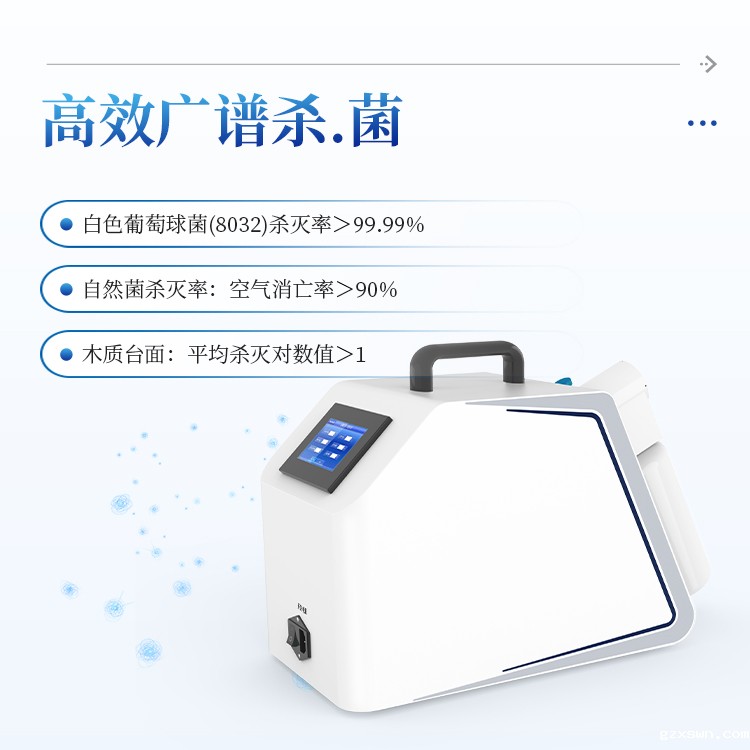 消毒体积和时间范围:无阻碍密闭空间消毒体积20-100 m3;喷雾时间为60min