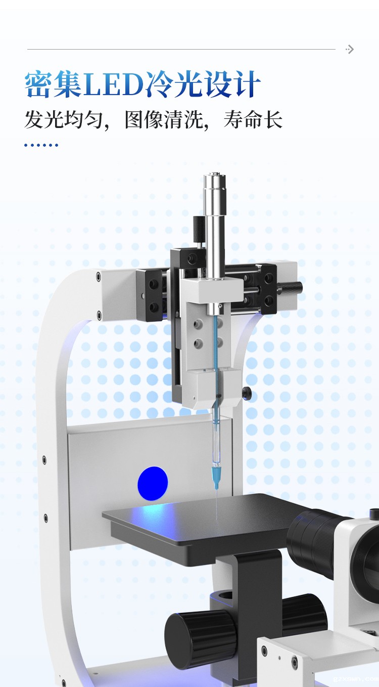 3. 采用工业级密集可调LED冷光源系统(寿命25000H以上),保证成像更清晰,同时避免额外热度所导致的小液滴挥发;