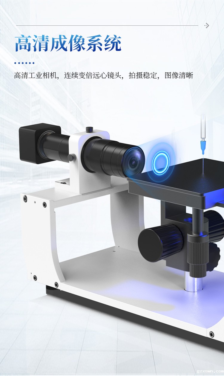 接触角测量仪主要由光源、注射单元、采集系统、分析软件四大部分组成,设备采用光学成像的原理。