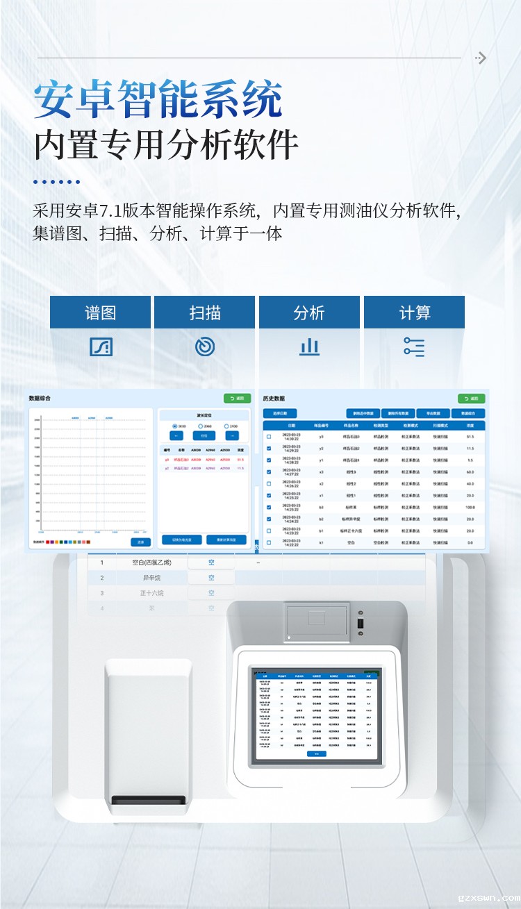 2)使用主流安卓7.1系统加8寸彩色大屏模式进行仪器操作,通过触屏即可进行仪器所有操作,方便快捷,像操作手机一样轻松上手;