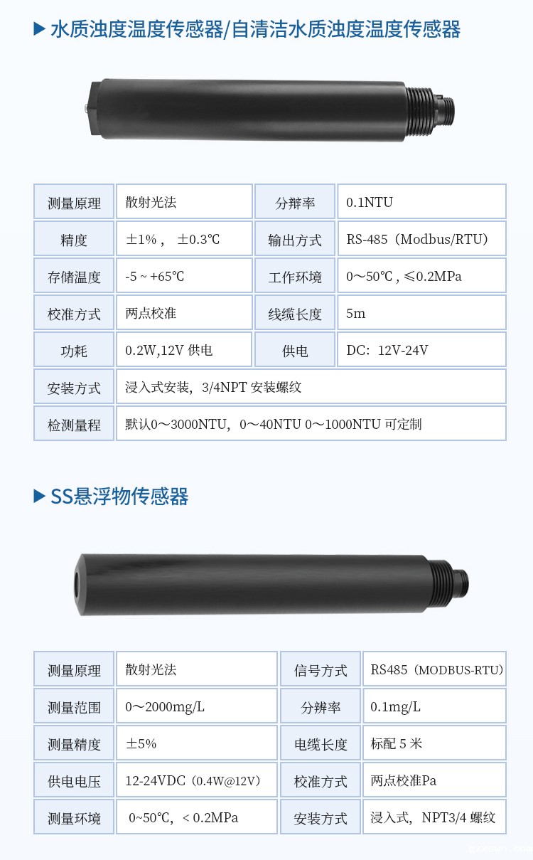 NTU 量程范围 | 默认0-400NTU,0-200NTU可定制 |